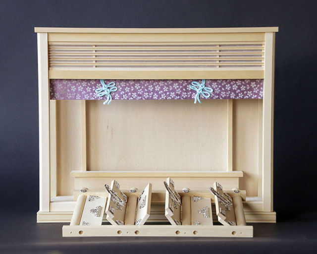 白金色の飾り細工を使用し、桜模様の玉虫織生地とばりを付属。